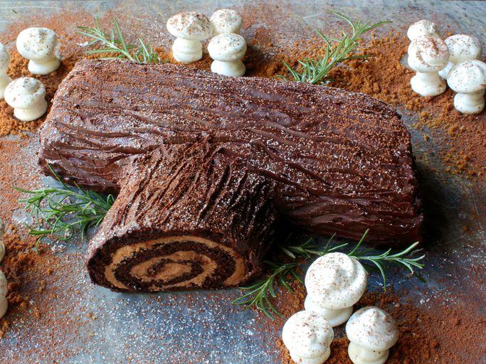 This Yule log recipe doesn’t require advanced baking and pastry skills since the techniques required are actually quite simple. So get ready to buche up this Noel with this classic holiday dessert that’s a real showstopper. It’s a simple-to-make, rich chocolate sponge cake with mocha buttercream filling, garnished here with meringue mushrooms and rosemary.
